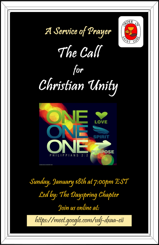 The Order of St. Luke hosts monthly online liturgies near minor feast days so that we can worship regularly as a whole order. Contact Chaplain General Kimberly Greway (kgreway at stjohnsnorthversailles.com) if you or your chapter would like to volunteer to lead one of the liturgies.